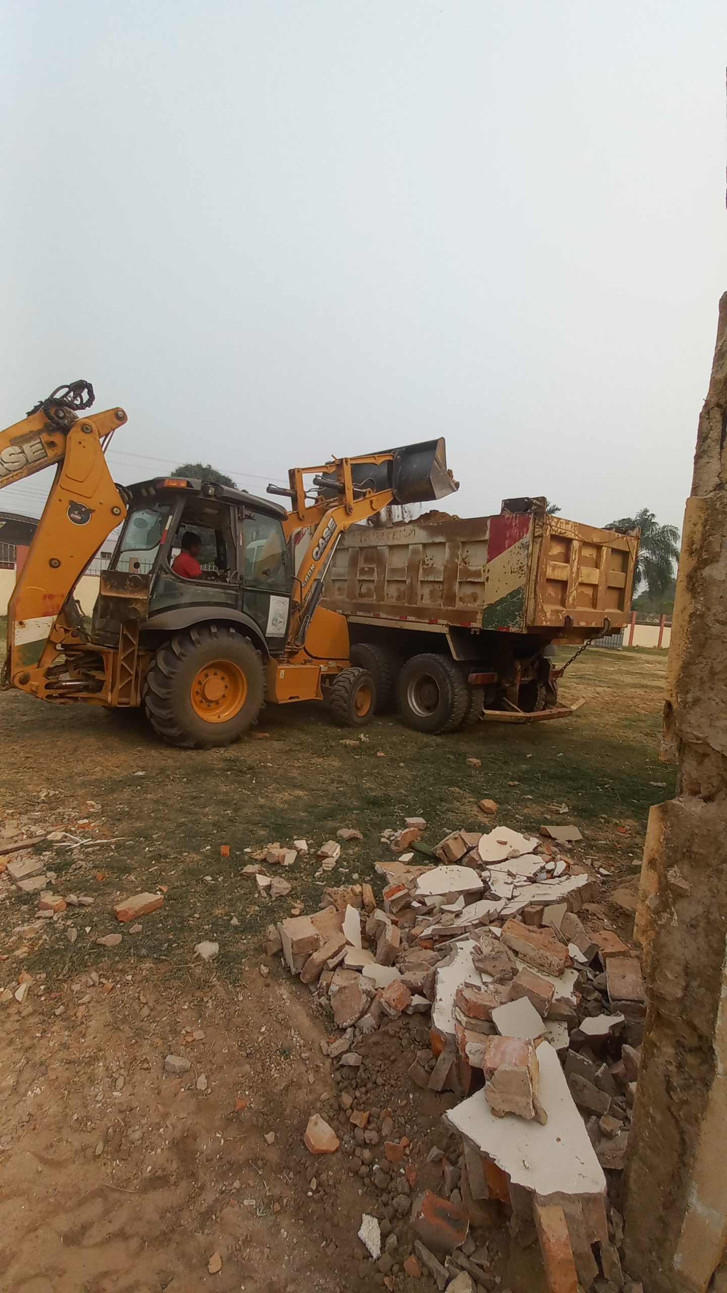 Desde la jornada de ayer, han comenzado los trabajos de demolición de la infraestructura antigua en la Unidad Educativa Dr. Ángel Foianini Banzer, el compromiso del Gobierno Municipal, es dejar el espacio libre de escombros para que la empresa ejecutora para la construcción del moderno modulo educativo, toda vez tenga la orden proceder, comience la construcción de la nueva infraestructura, obra que alcanza una inversión de más de 8 millones de Bolivianos para el beneficio de una población estudiantil que supera los 1000 estudiantes. El lunes pasado, el alcalde Hagapito Castro, realizo la inspección en el lugar verificando el trabajo de la maquinaria pesada.